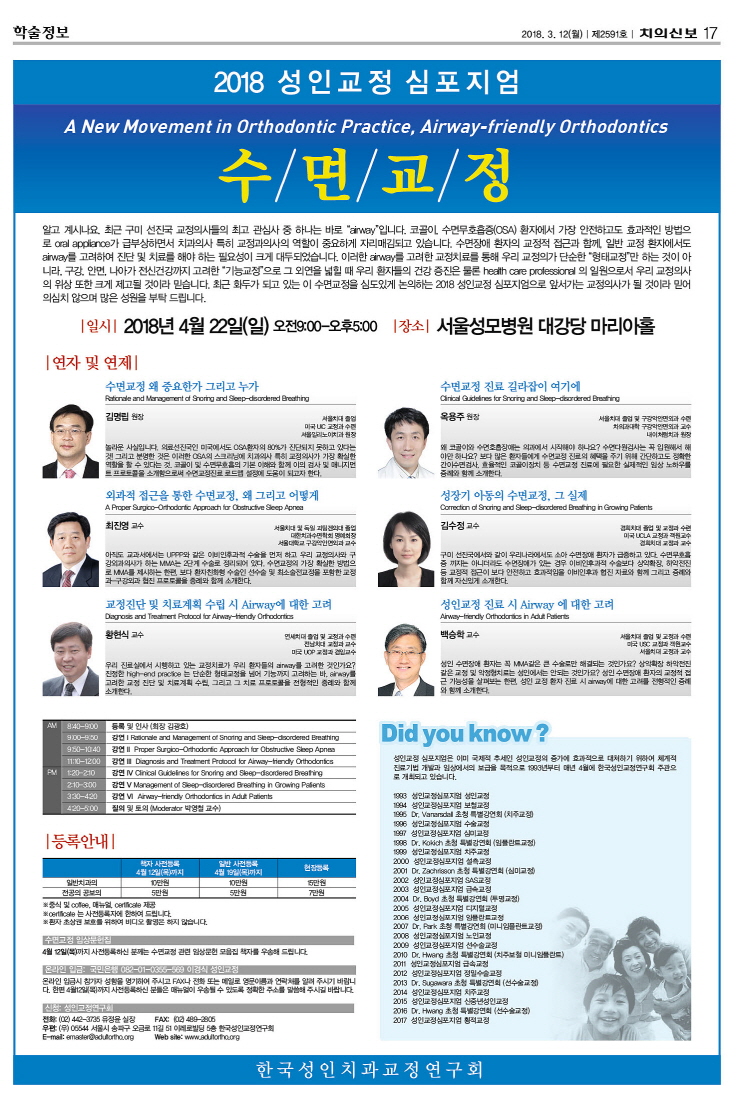 4월 22일 한국성인치과교정연구회 "airway friendly orthodontics" 강의