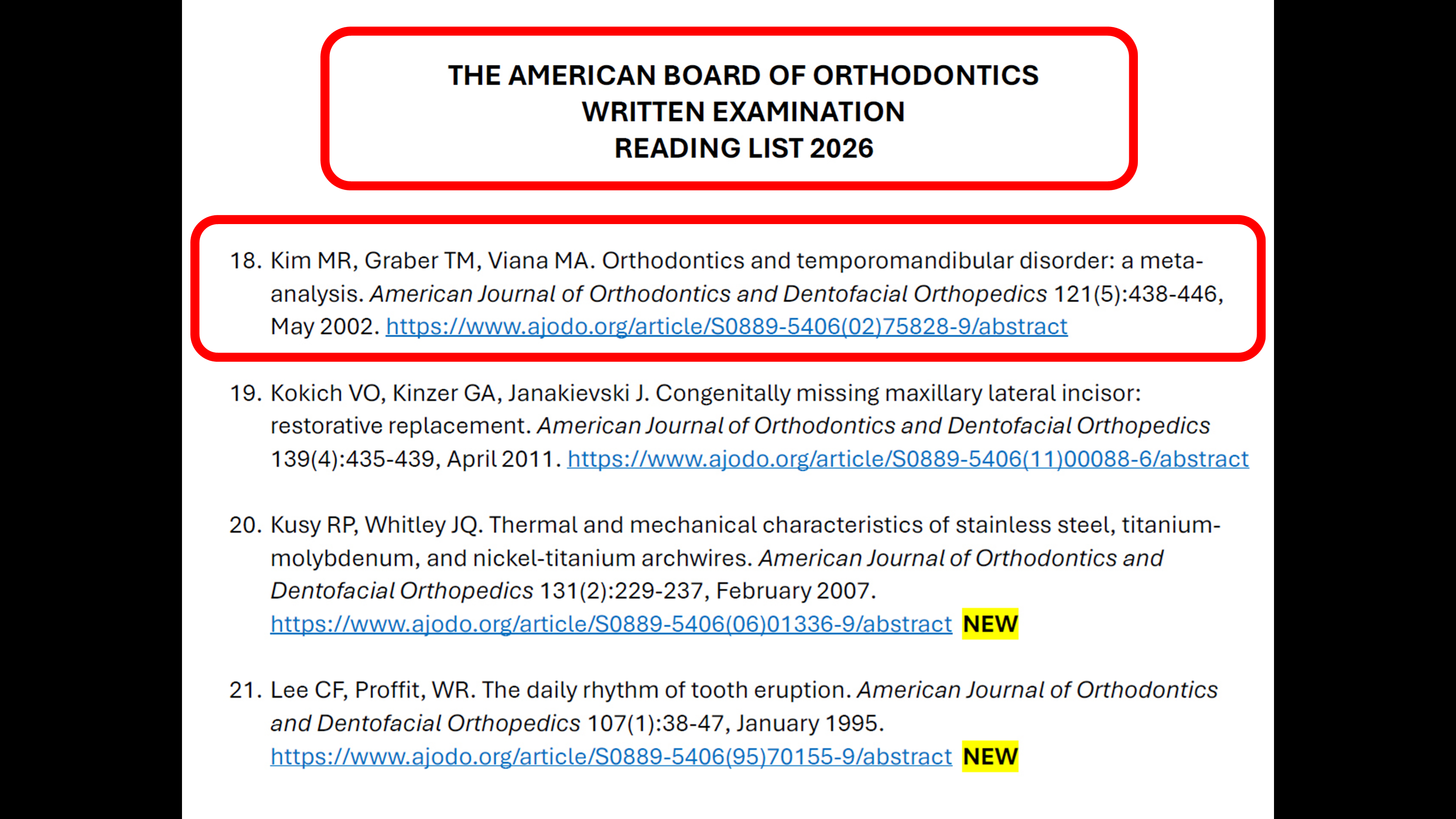미국 교정과 전문의가 되려면 꼭 읽어야하는 저널 ( 2026 ABO reading list) 에 일리노이치과 원장의 논문이 20여년간 포함되어 있습니다.